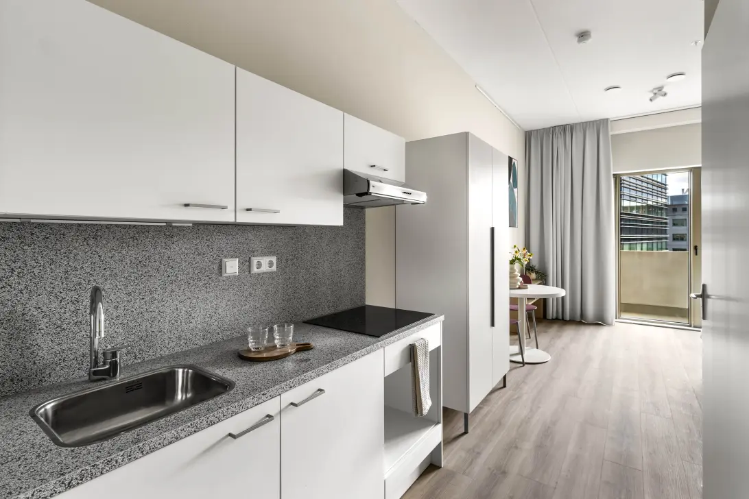 Compact, bright and ready to move in. Everything you need, nothing you don't. Ideal for professionals who want the Amsterdam experience - without the hassle. Your own kitchen, bathroom, and sleeping area are all designed for efficiency and comfort. Ideal for solo living and making Amsterdam your home base.
