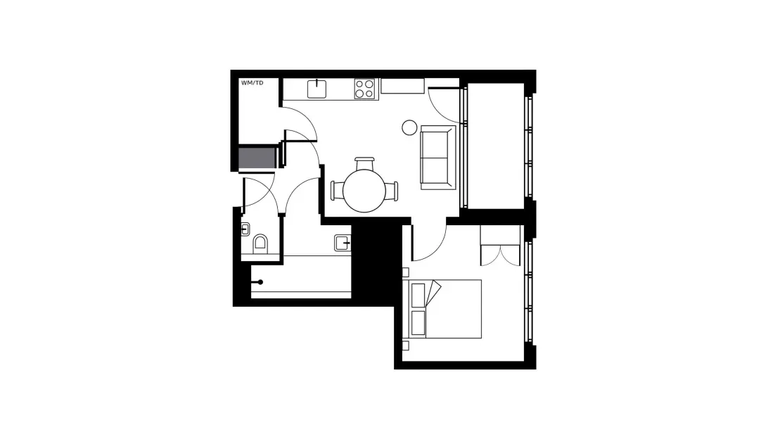 More space, more freedom. Great for couples and/or remote workers needing room to breathe. The dedicated bedroom gives you privacy while the open living area becomes your blank canvas. Want to style it yourself? Go unfurnished and bring your vibe from day one. Prefer to skip the moving hassle? Go furnished and settle in straight away.
